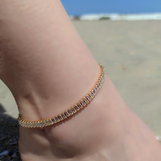 brățară de picior PEERLESS placată cu aur 18k și strasuri zirconia