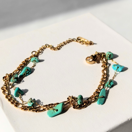 brățară LUCKY placată cu aur 18K și pietre turcoaz