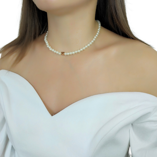 colier AZORE - colier cu perle albe, strasuri și închizătoare toggle