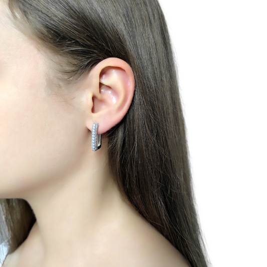 cercei PRECIOUS - placați aur 18K, cercei argintii dreptunghiulari cu strasuri zirconia albe