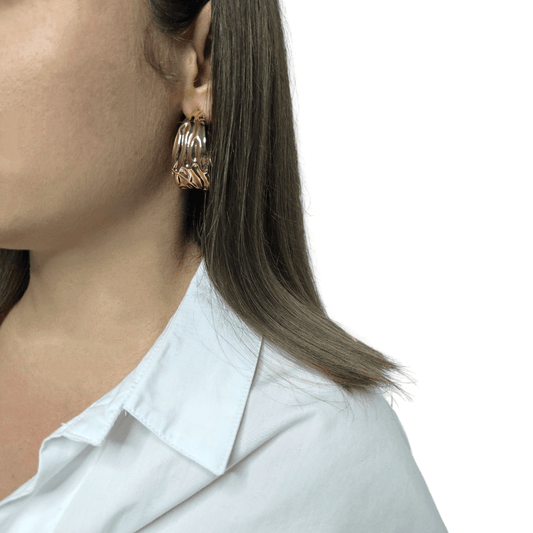 cercei LADY - cercei verigă cu strasuri transparente și mate