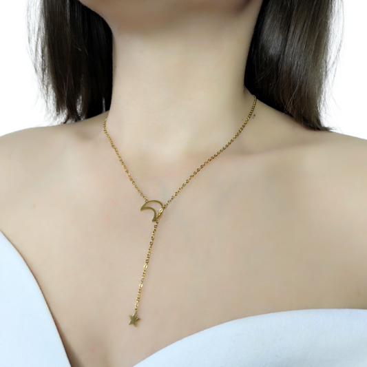 colier lung cu lună GOLDEN MOON și stea, placat aur 18K