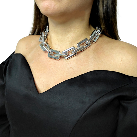 colier MAKE THE RULES - colier argintiu, cu zale supradimensionate