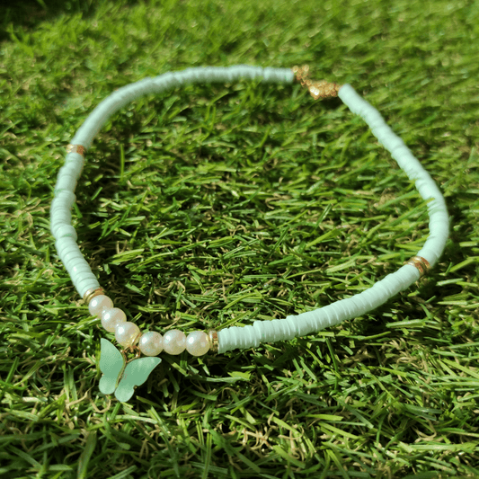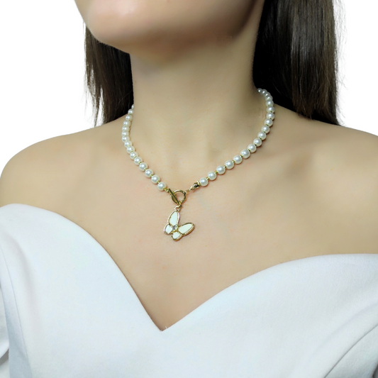 colier BUTTERFLY - colier perle și mărgele cu pandantiv fluture