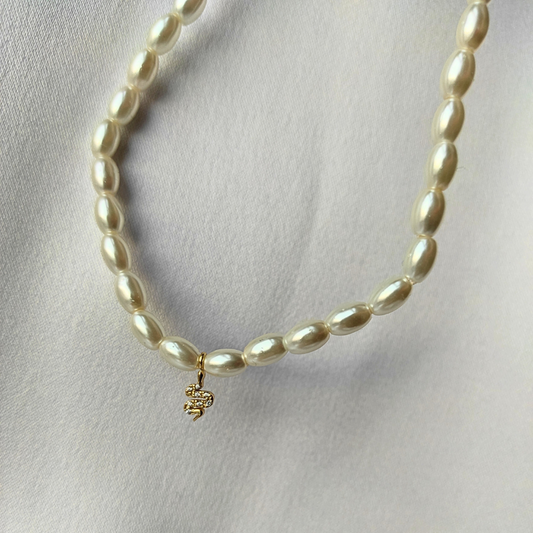 colier ALMA placat aur 18K, perle de cultură și pandantiv șarpe