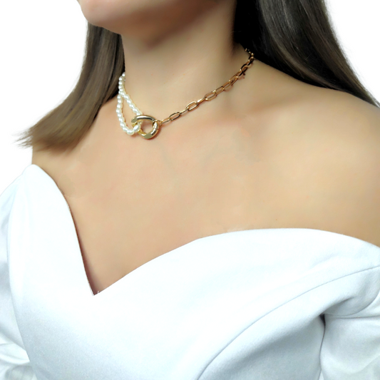 colier PERFECTION - lanț cu zale și perle de apă dulce