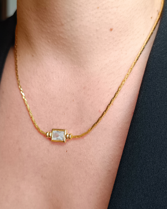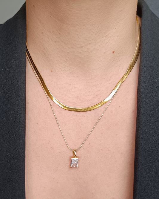 colier Odyssey placat cu aur 18K, pandantiv cristal dreptunghiular