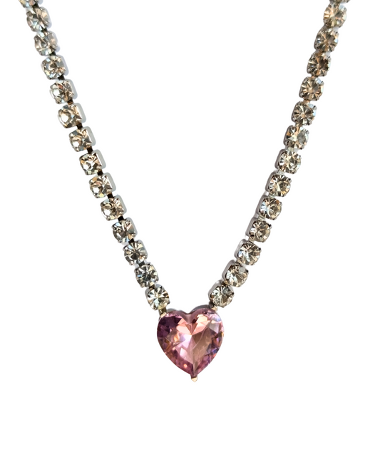 colier Riviera placat cu aur 18K, pandantiv inimă, strasuri zirconiu