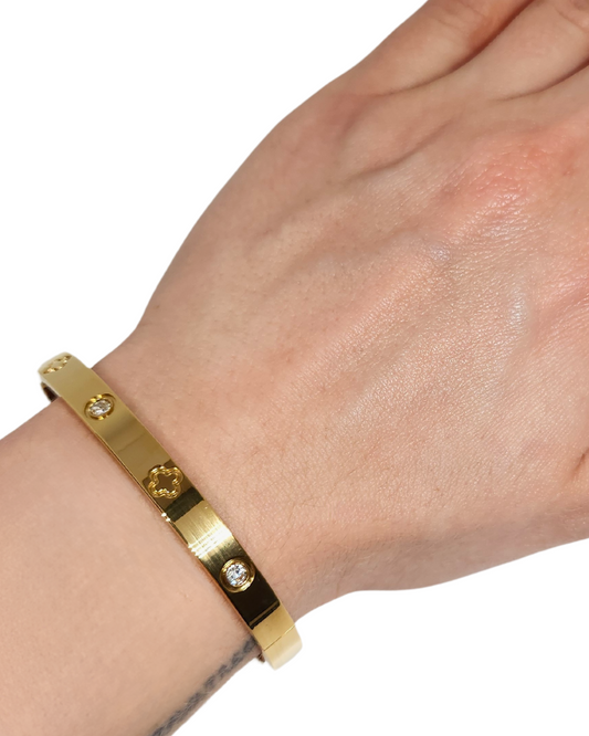 brățara BLINK placată cu aur 18K, cu strasuri și simbol trifoi