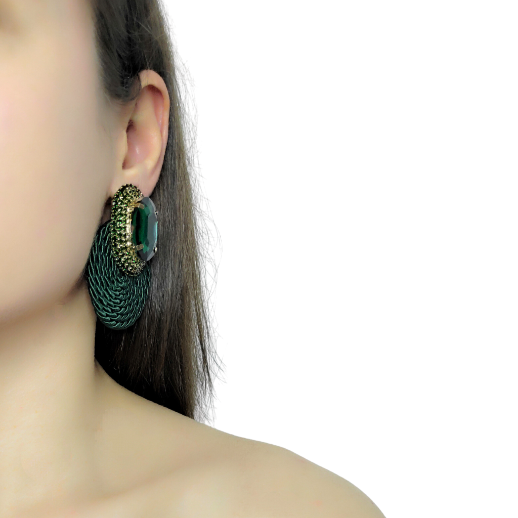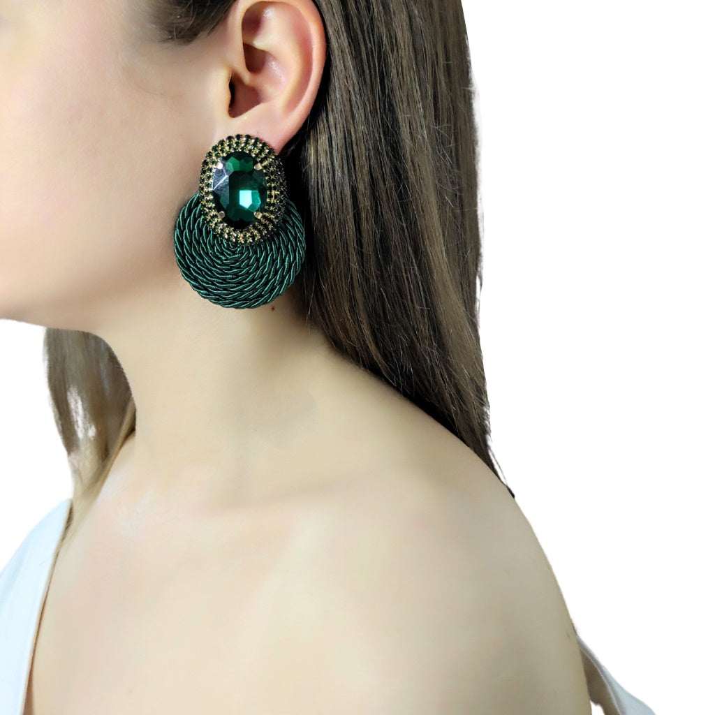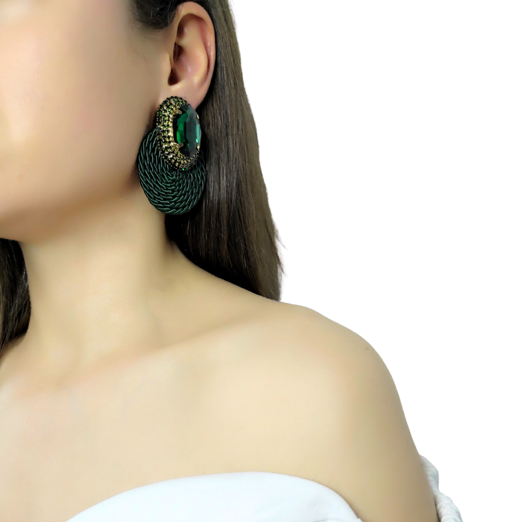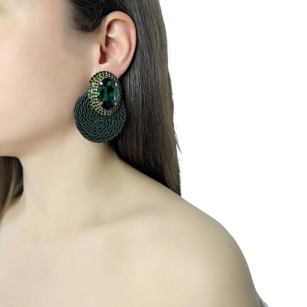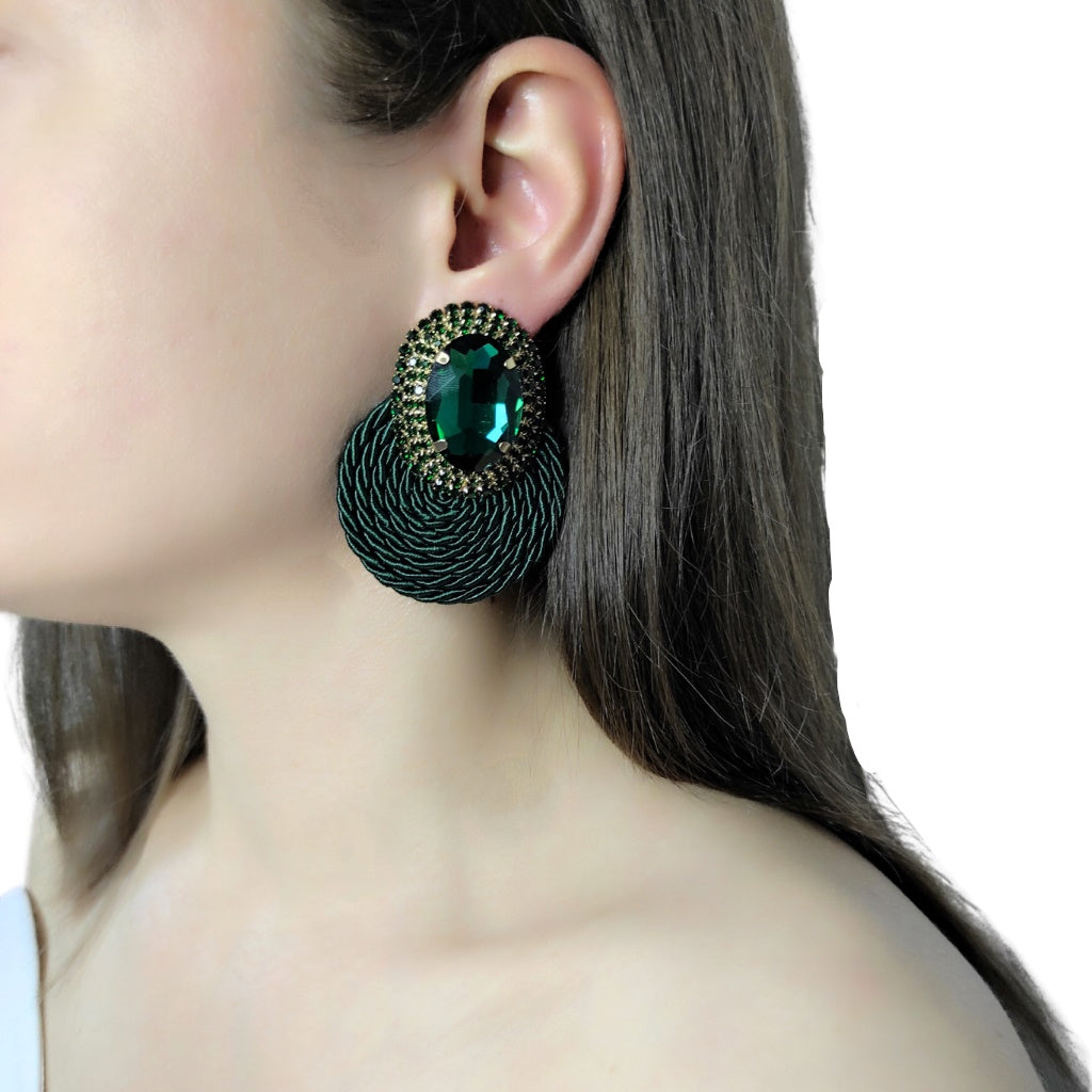 Cerceii ECLAT sunt realizați manual din material textil, la care sunt aplicate strasuri de dimensiuni mari, culoare verde-regal.